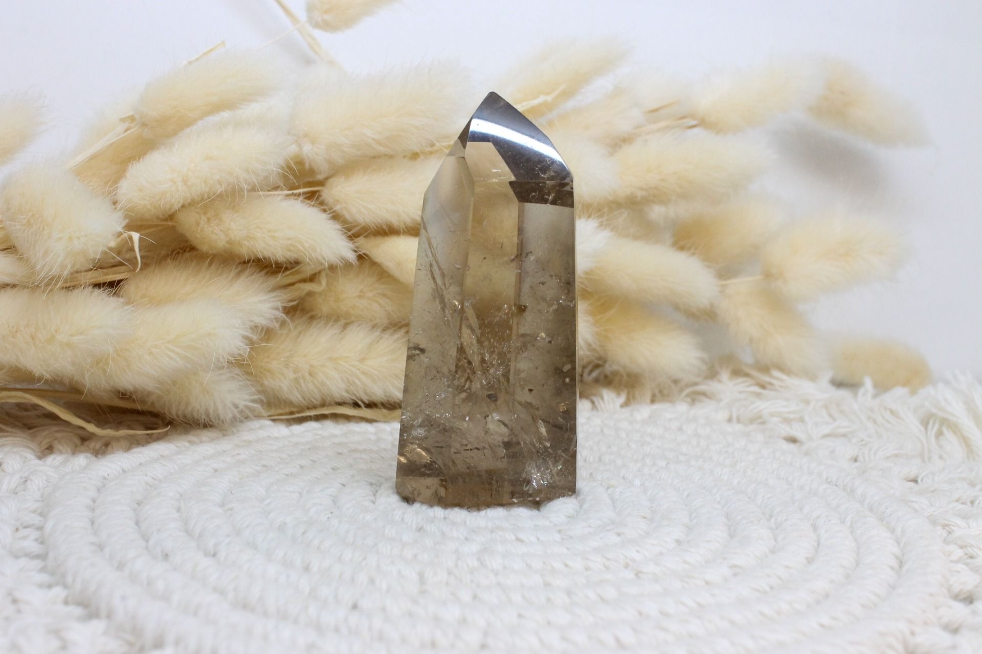 Pointe en quartz fumé, sélectionnée pour ancrer, stabiliser et structurer l’énergie intérieure.